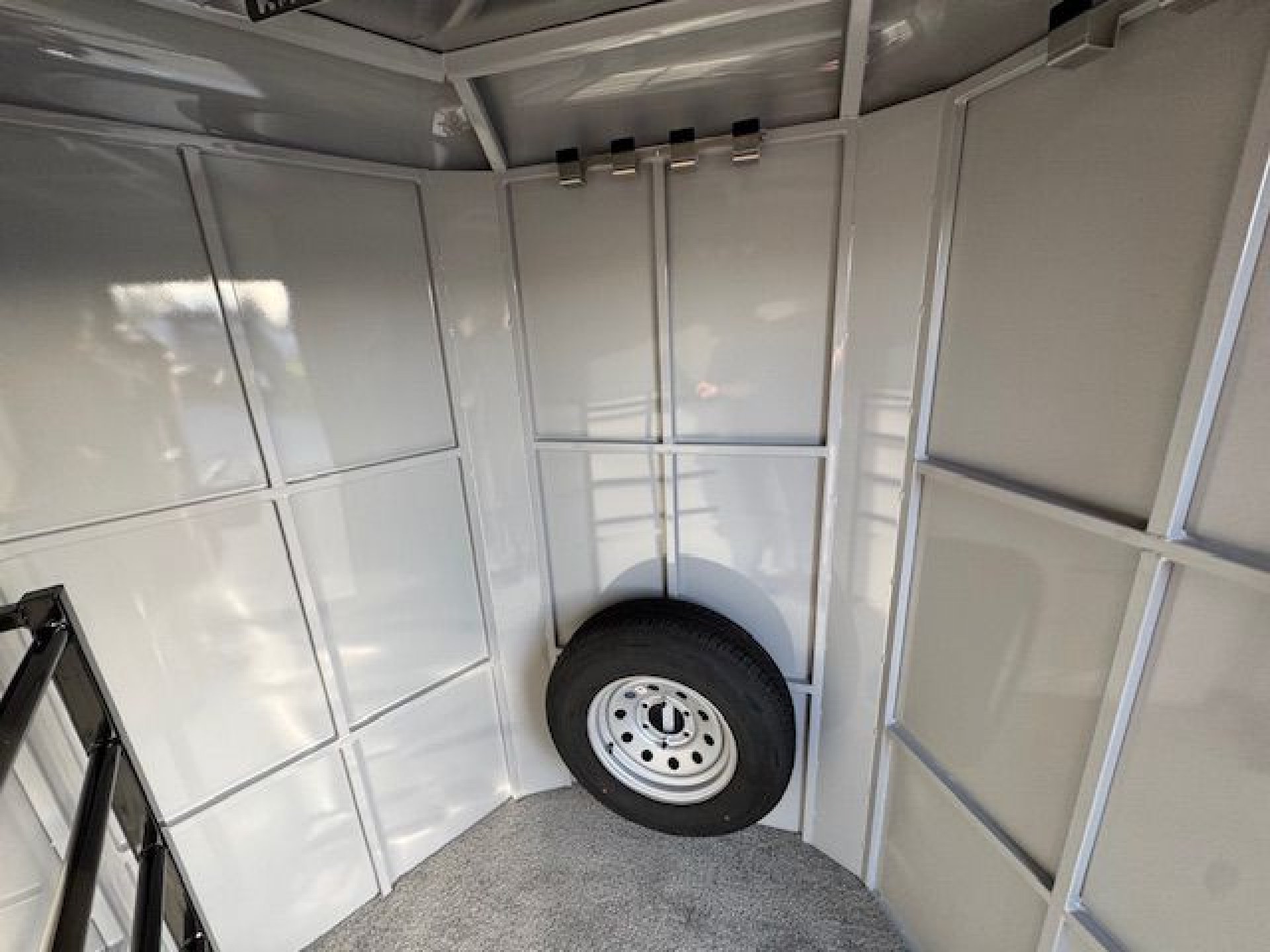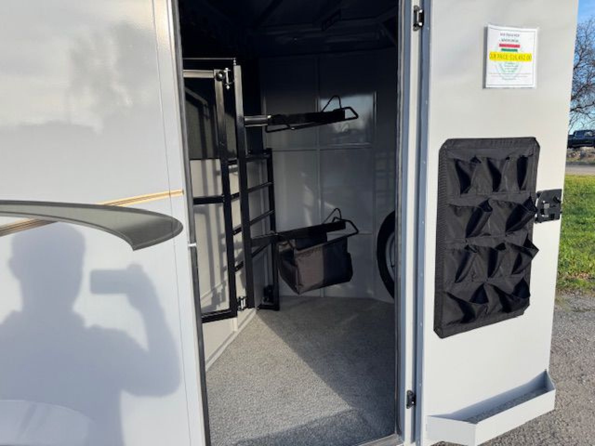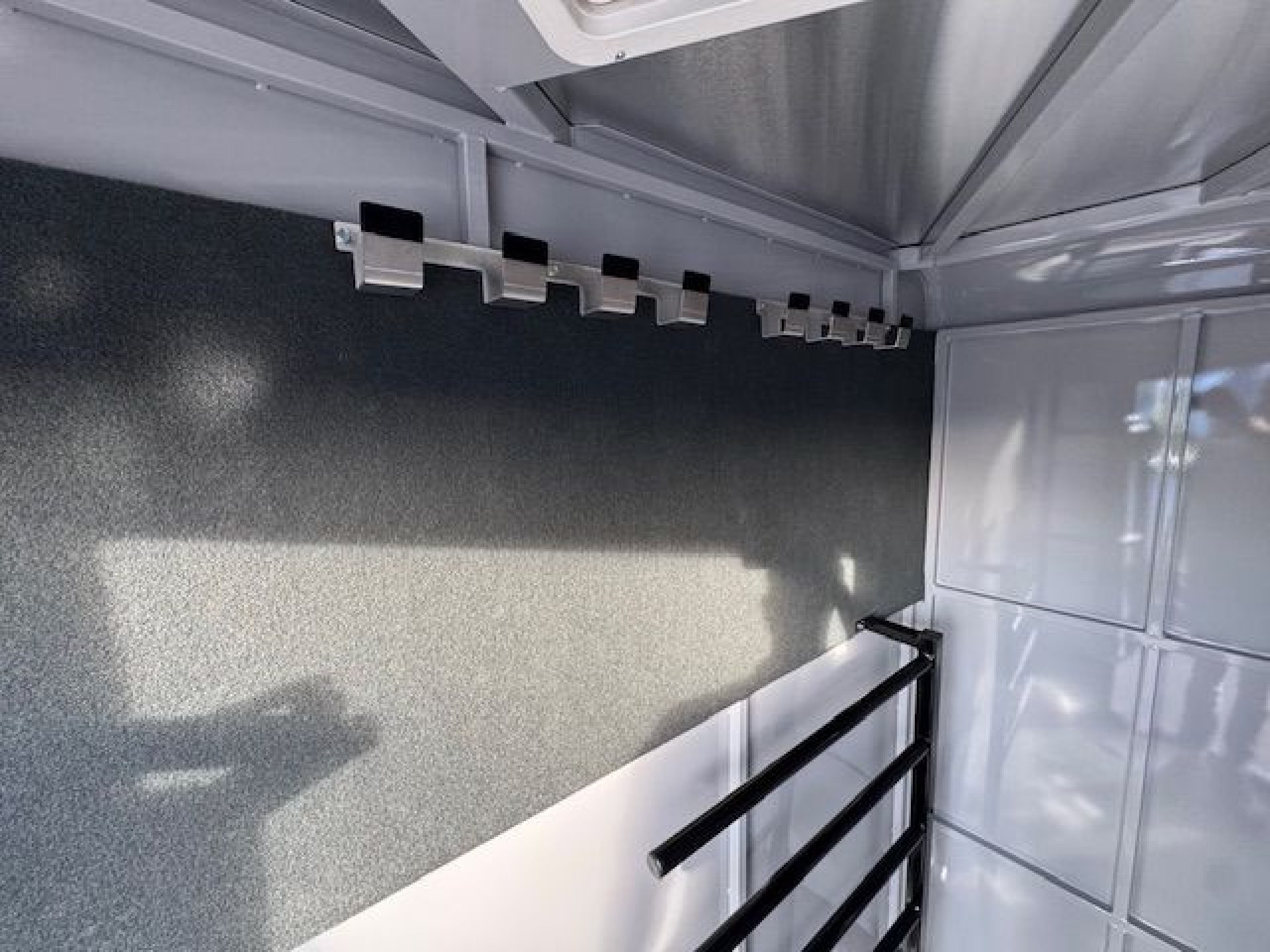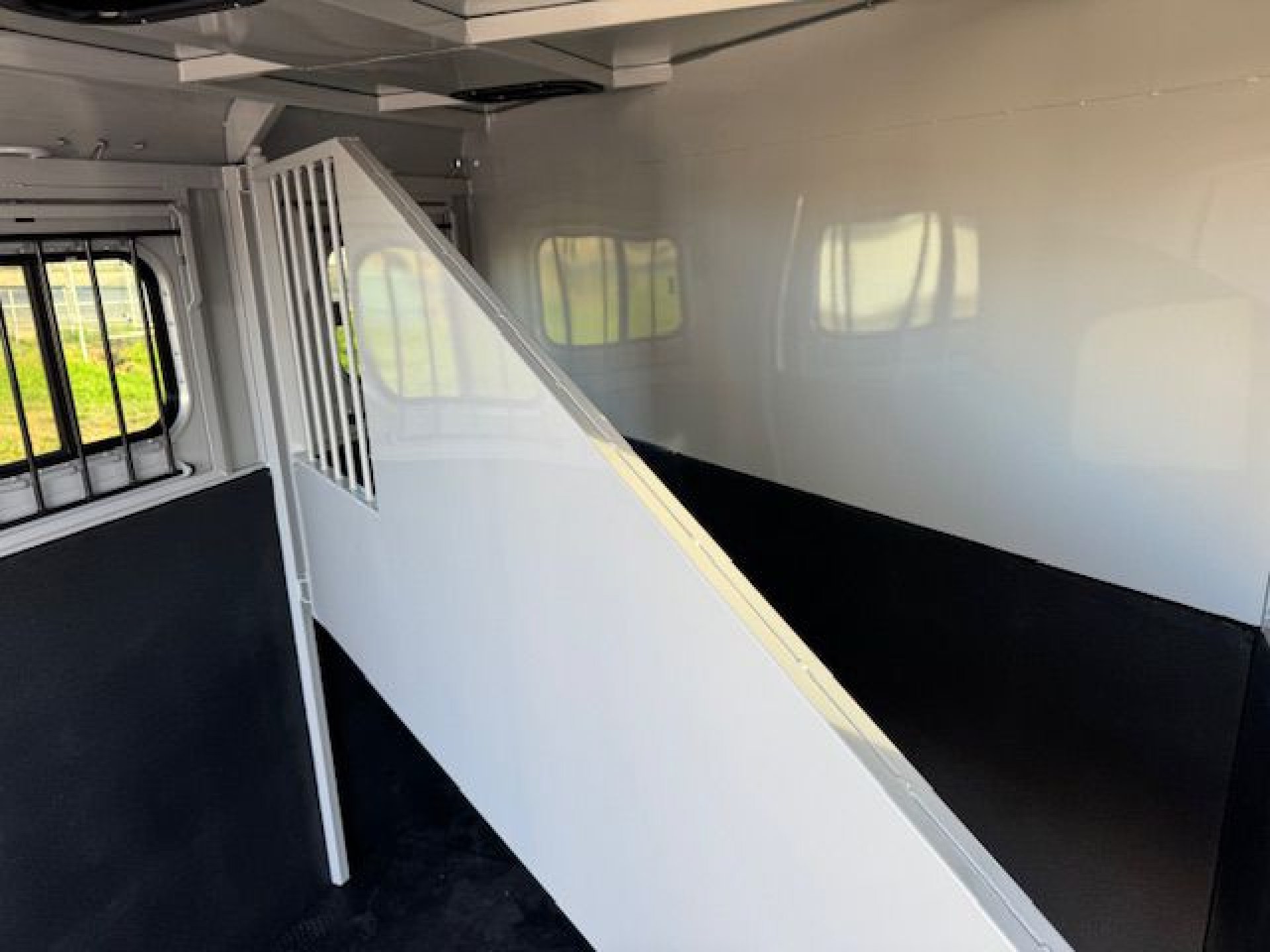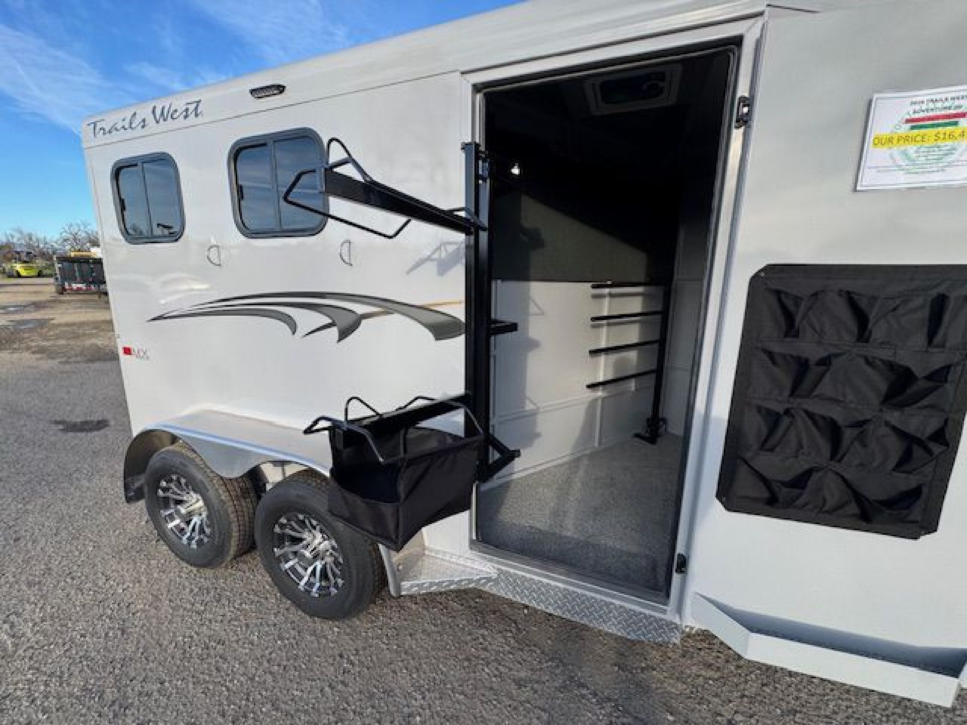 Bumper pull horse trailer with tack room. Fully enclosed horse compartment with drop down feed windows head side, tail side windows and roof vents in each stall. Rubber floor mats and wall matts are standard.