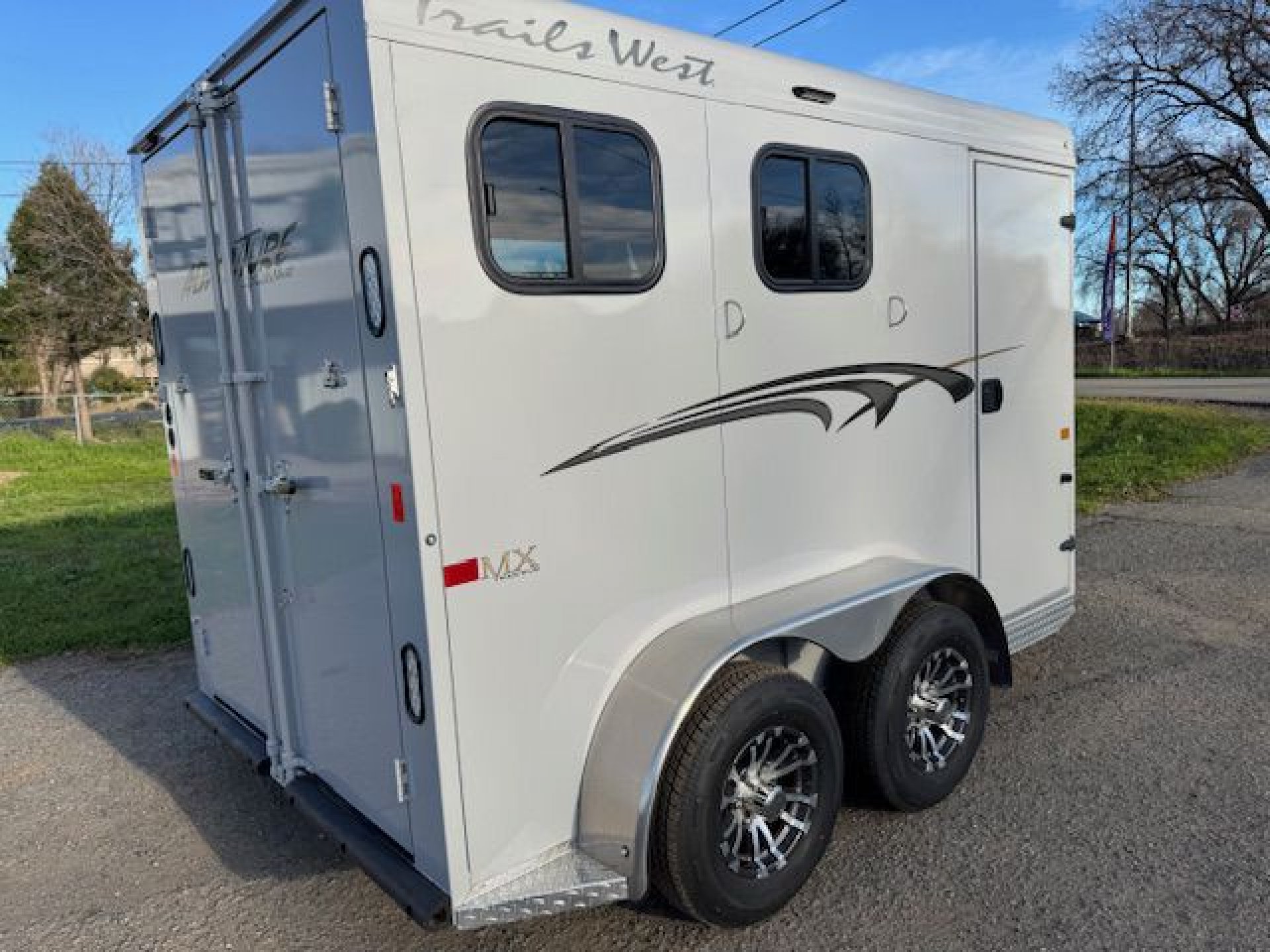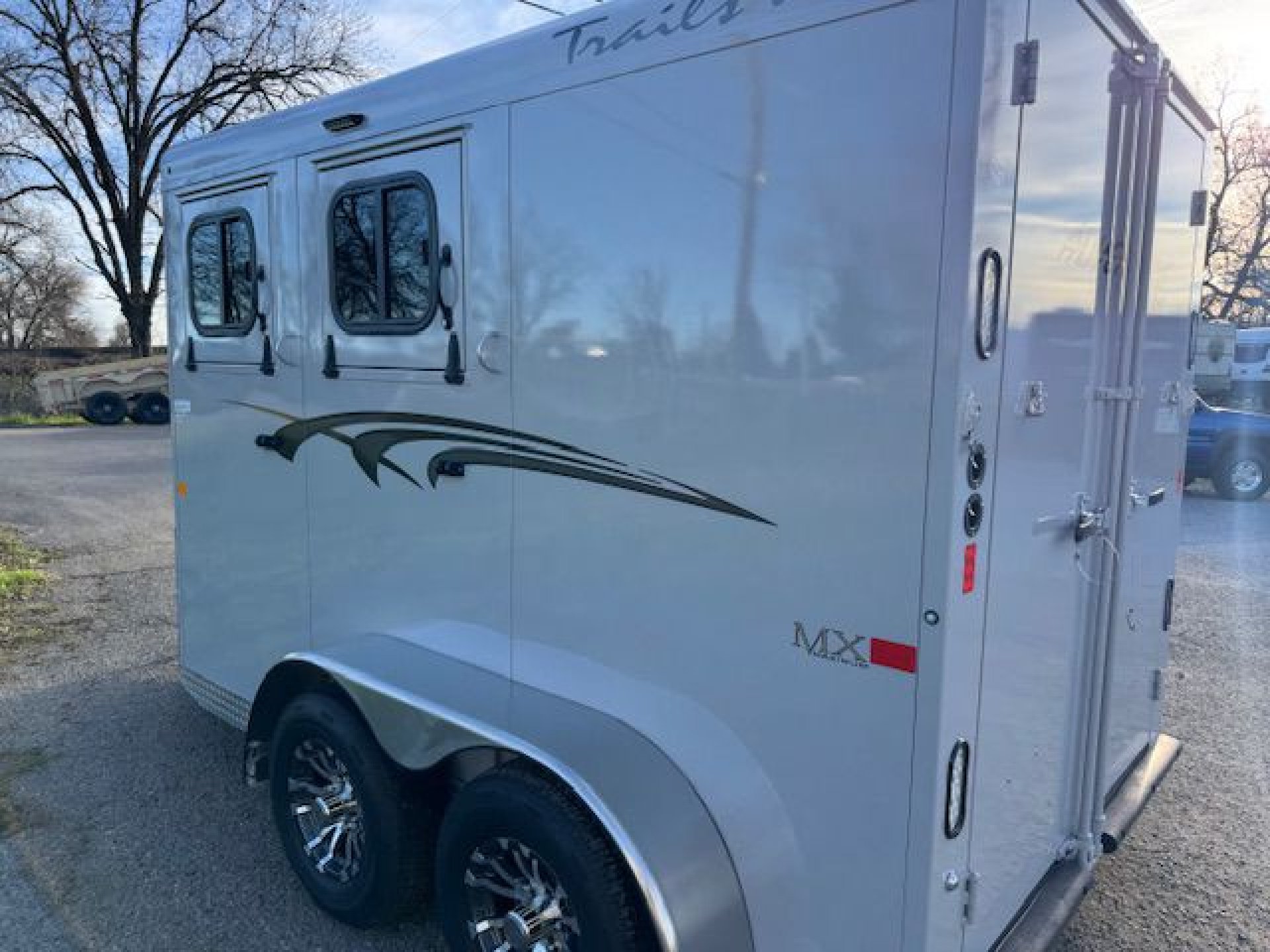 The Adventure MX is our best-selling horse trailer to date. It is the best-priced steel-framed aluminum-skinned trailer in the industry, and features the perfect combination of style and value. This trailer sports our newly designed aerodynamic front, and comes loaded with head-side drop-down feed windows, tail-side sliding windows and rubber-wall mats throughout the horse compartment, making it the best-equipped trailer in its class.
