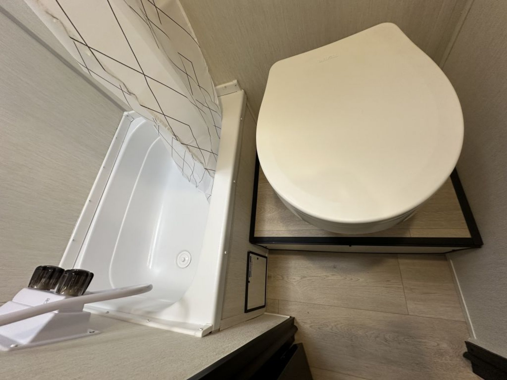 The bathroom includes a full shower and toilet, offering privacy and comfort on the road. Large windows, LED lighting, and quality construction materials create a bright and inviting interior. Outside, you’ll find useful features designed for real-world camping, including an electric awning, exterior storage, stabilizer jacks, and available LP quick-connect for outdoor cooking.