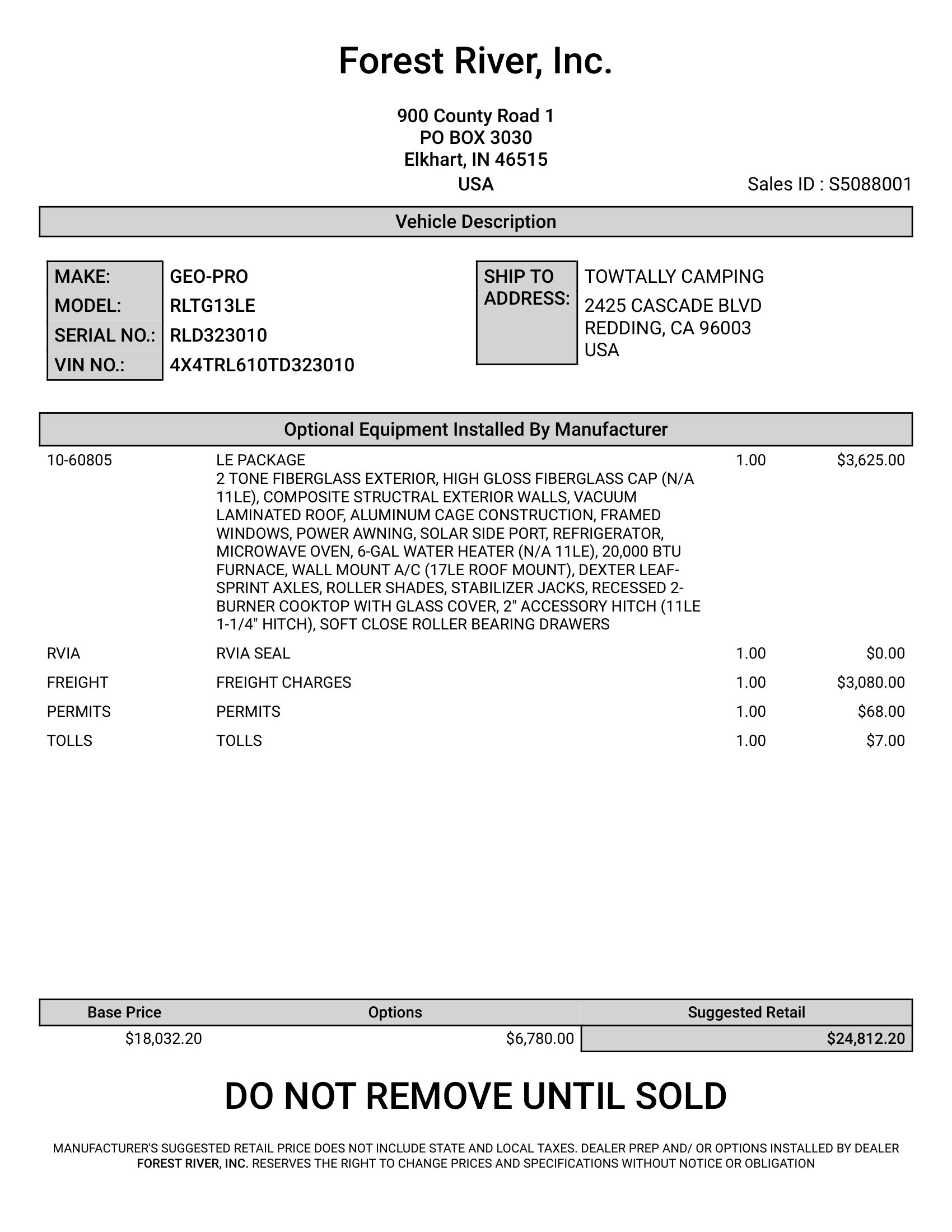 | Type | Travel Trailer | Stock No | TD323010 |