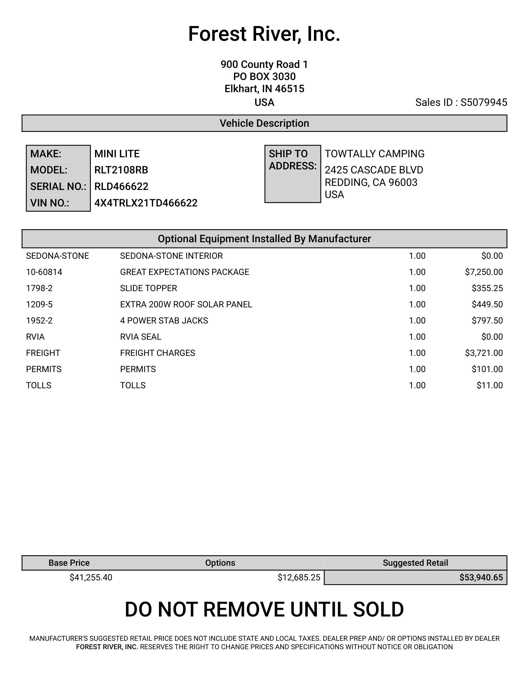 | VIN | 4X4TRLX21TD466622 | Location | Redding |