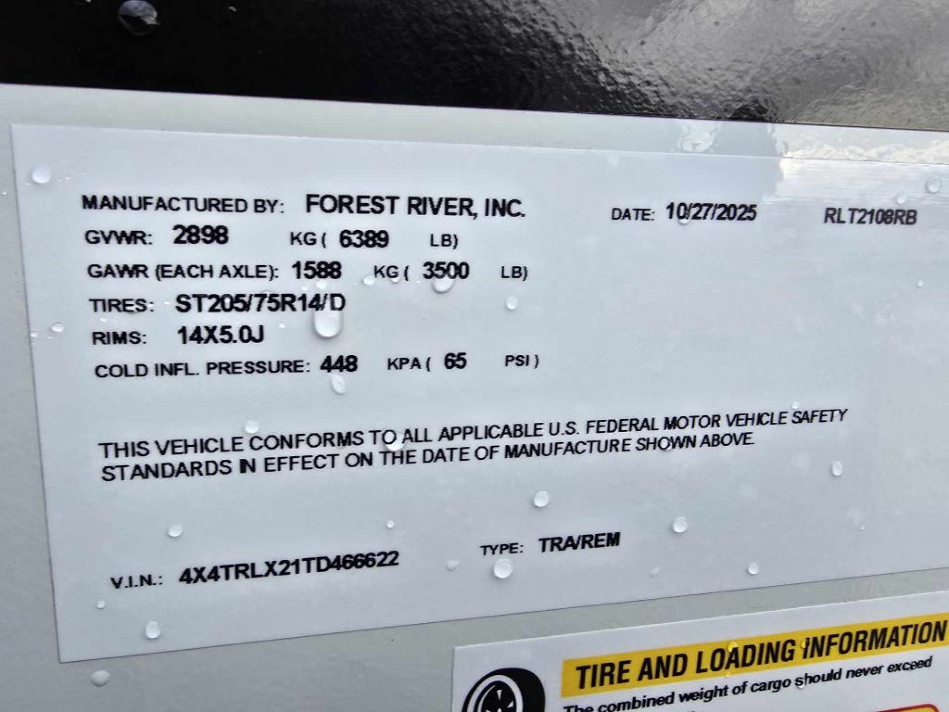 | GVWR | 6389 lbs. | Model | 2108RB |