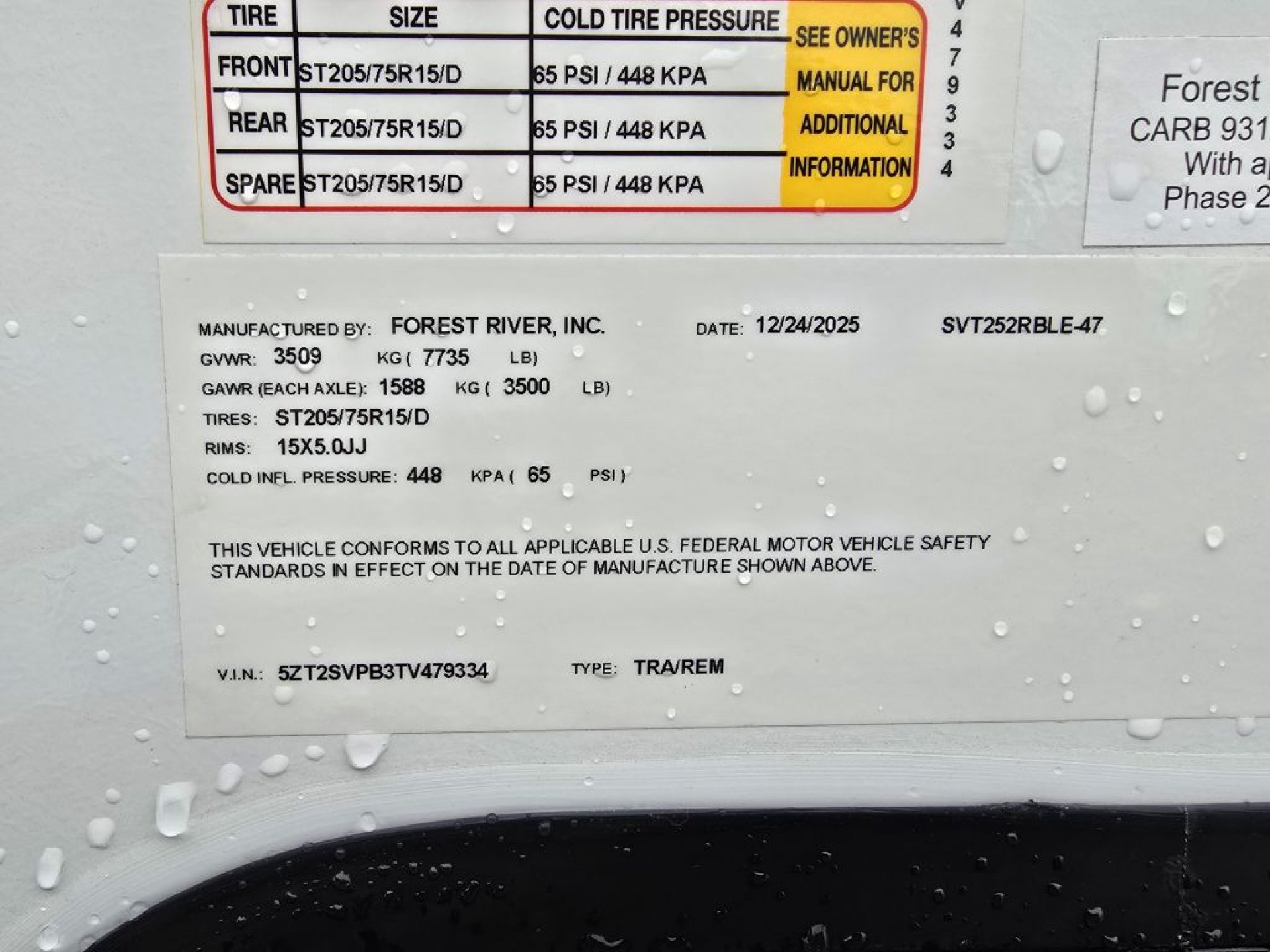 | Black Water | 30 gals. | GVWR | 7735 lbs. |