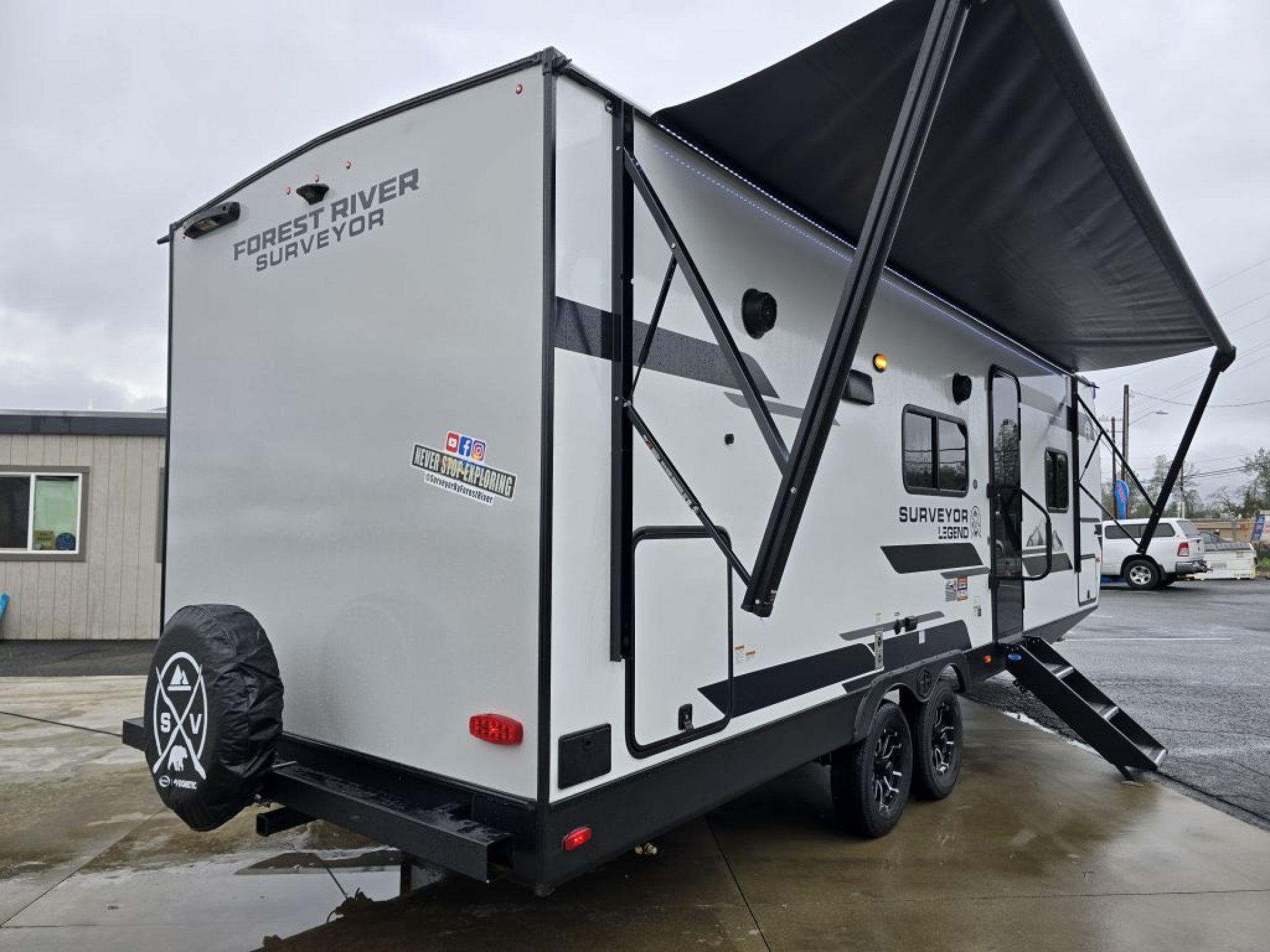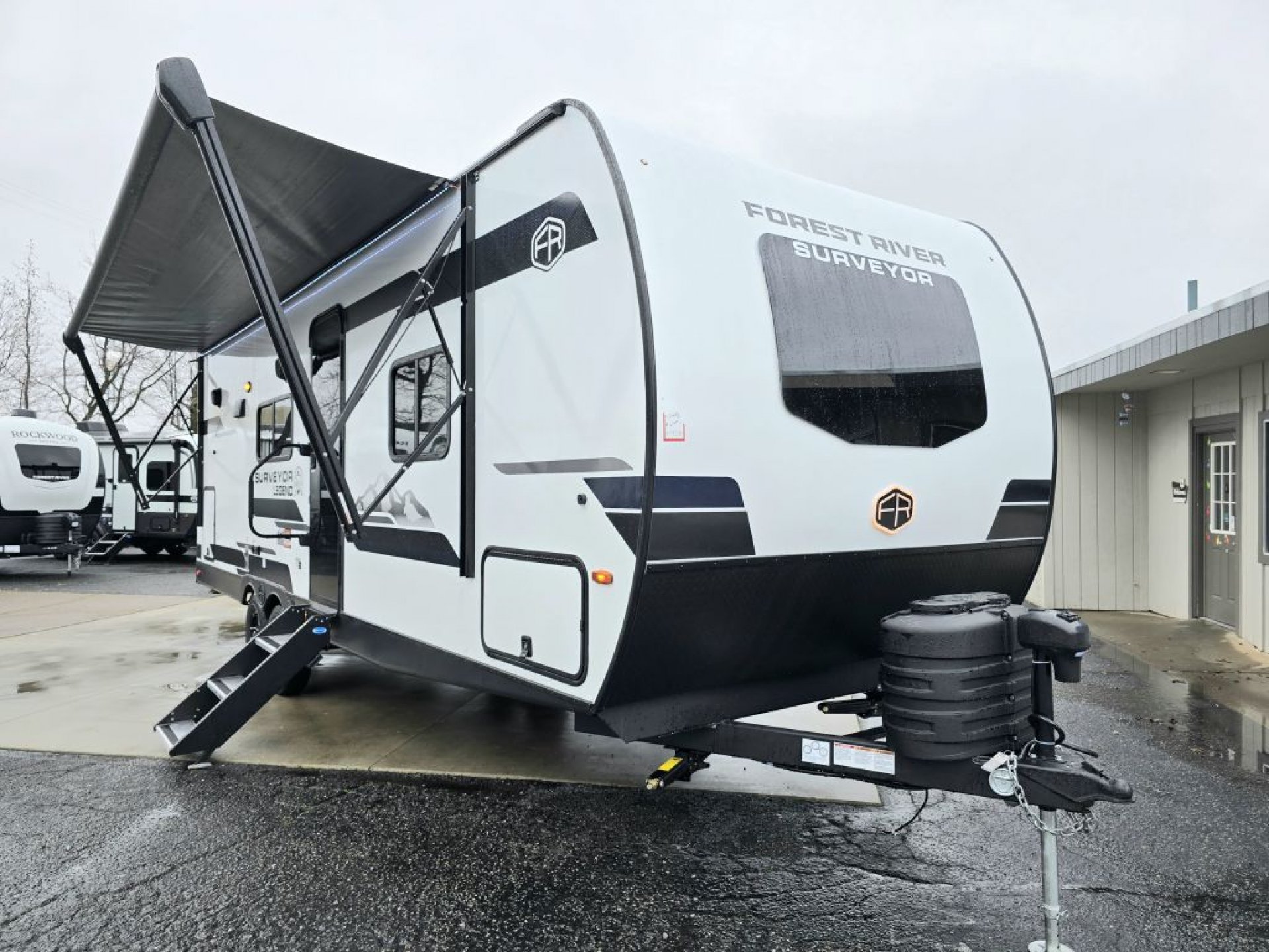 The 2026 Forest River Surveyor Legend 252RBLE is a lightweight, rear-bath couples coach designed for comfort, efficiency, and premium features. With a spacious walk-in bathroom, a large slide-out, theater seating or dinette options, and a private front bedroom with a true queen bed, the 252RBLE delivers exceptional livability without heavy tow weights. Built with laminated construction, Azdel, an enclosed underbelly, and upgraded climate protection, this model offers year-round camping capability. The modern kitchen, oversized pantry, power awning, and outdoor kitchen make the 252RBLE one of the top couples travel trailers in the 2026 market.