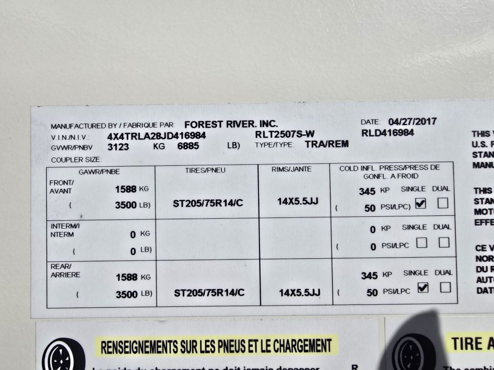 GVWR | 6885 lbs. | Model | 2507S |